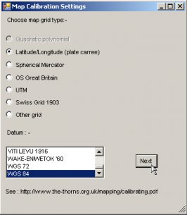 Map Calibration Settings > select Latitude / Longitude (plate carree) > and WGS 84 > Next [2]
