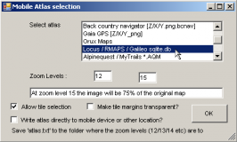 And in the Mobile Atlas selection choose under Select atlas the option Locus/RMAPS/Galileo sqlite.db > OK [6]