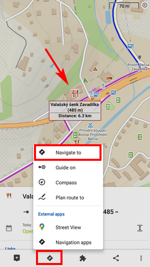• tap button and select Navigate to