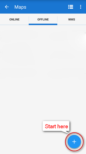 • Main menu or top panel button Maps manager offers three categories of maps in three tabs - Online, Offline and WMS - select Offline