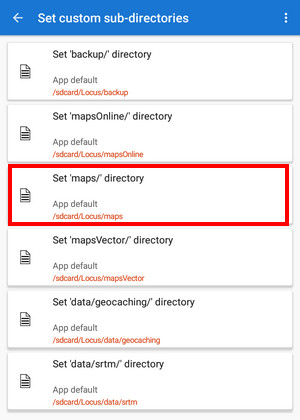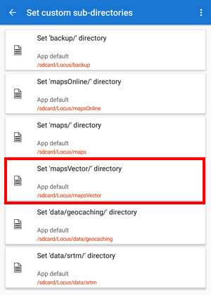 LoMaps or other vector maps are stored by default in /Locus/mapsVector/ directory.