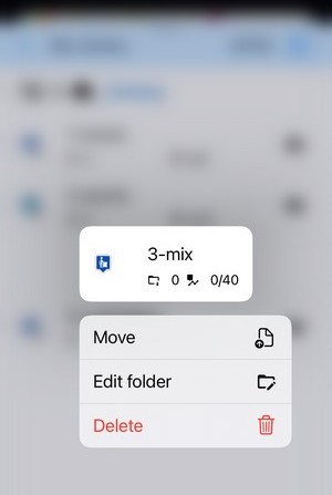 Each folder can be edited, moved, exported or deleted.