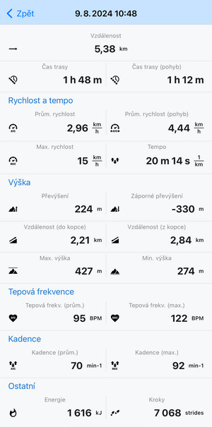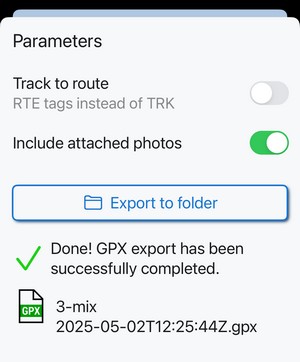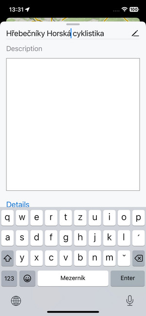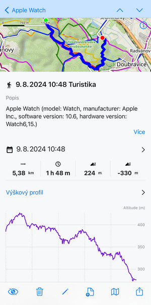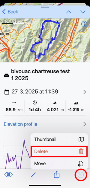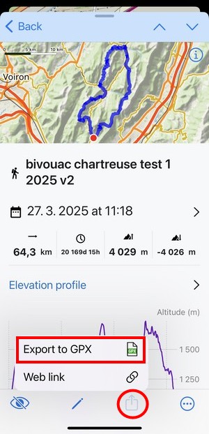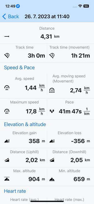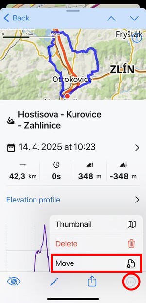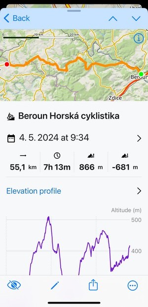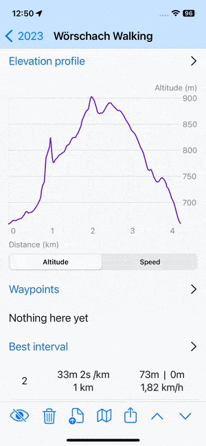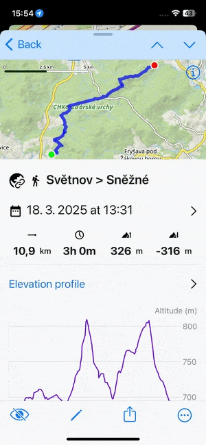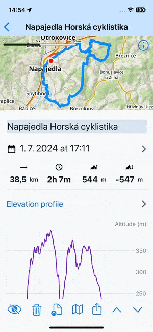 When you tap a track or route in the library or on the map, its detail screen emerges: