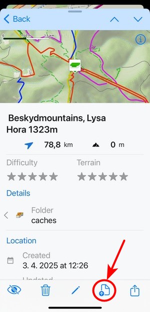 Geocache detail also displays basic information like difficulty or terrain.