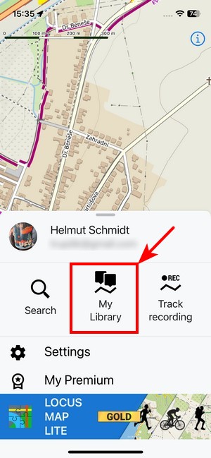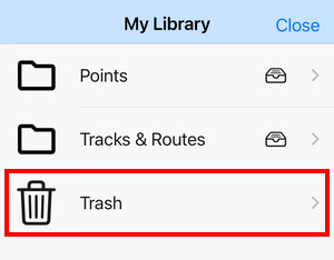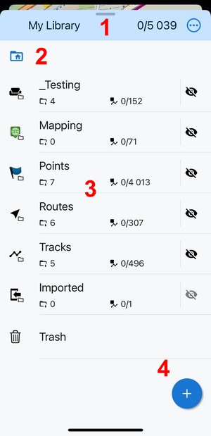All your user data - tracks, routes, and points - are managed in My Library. It can be accessed from the Main menu: