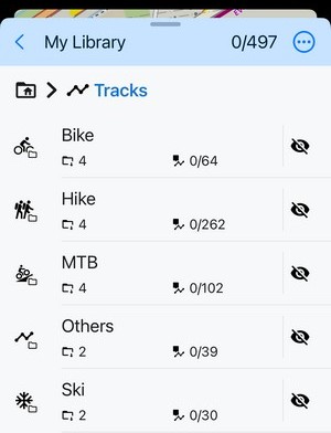 Your data is managed in a structure of folders and sub-folders. Tracks, routes and points can be mixed. Three levels of nested subfolders are available for free. With Premium, you can use up to six levels.