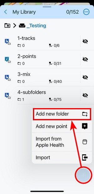 If you want to create a new point of interest, you can do so on the main screen or in a selected point folder. The first option offers a selection of folders where to store the point, the latter stores the point directly in the selected folder.