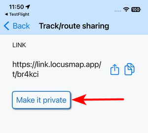 Everybody who has the link can view the track on the web. If you decide to hide it from others, tap Make it private in the sharing dialog. The link becomes inactive: