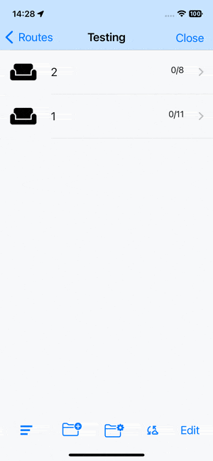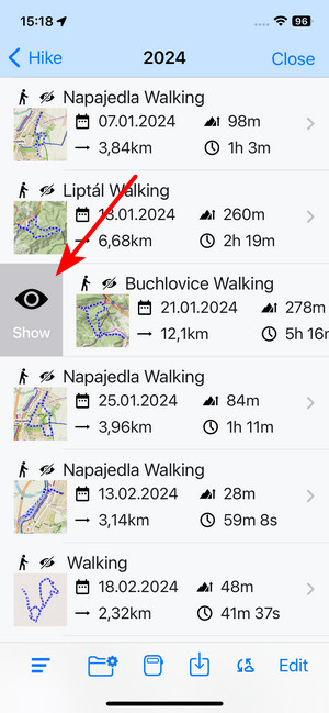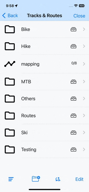 To remove a track/route from the folder, swipe it to the left and tap the trash button: