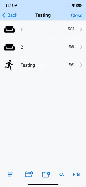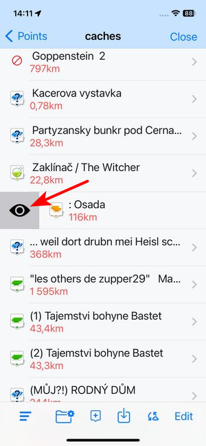 To remove a point from the folder, swipe it to the left and tap the trash button: