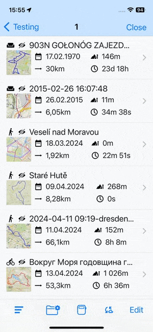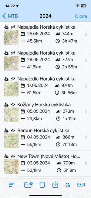 The library consists of a structure of folders and subfolders, containing all your recorded tracks, planned or imported routes, imported geocaches or newly created user points of interest