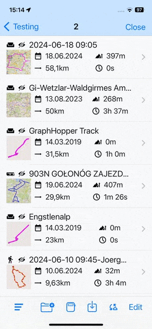 Tracks and routes are displayed on the map after activating. You can activate a single track or a group of tracks at once.