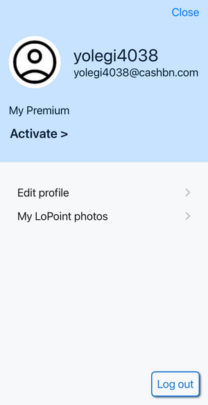 When you are signed up and logged into your Locus account, your user profile name and e-mail address display on the main menu header:
