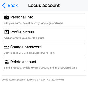 Locus Map LITE settings offer configuration of a few general parameters - units, LoPoint photos, map screen and automatic synchronization.