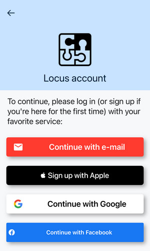 You can create a new account with Apple ID, Google, Facebook or your e-mail address: