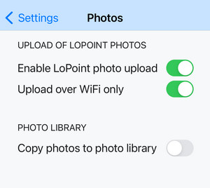 This setting contains a few controls for the upload of user photos to LoPoints:
