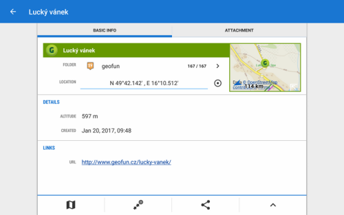 Geofun webpage contains a direct link enabling mass import of all Geofun games starting points to Locus. It is possible to work with the points the same way as with any ordinary points - sort them, filter them, display them on map, navigate to them etc.:
