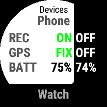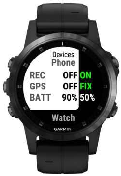 This screen shows the state of both phone and your Garmin device. For both devices, it shows: