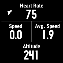 If activity recording is running or paused, 2 activity data screens with a black background are available with pre-configured data fields.