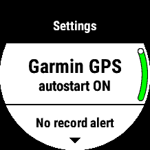 User can affect the behaviour of the application by accessing settings in the app menu. Application menu can be opened same way as watch system menus (long-press UP on non-touch watches) from any activity screen except map screens. Settings are stored in device permanent memory.