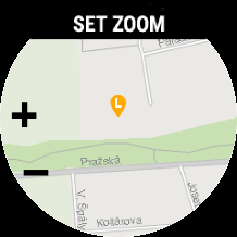 User can change the map scale by pressing the MENU button. If the user enabled activity recording on Garmin devices, the recorded track is also rendered on the map. Navigation/guidance related information is currently not available on this screen.