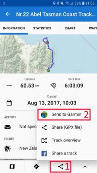 Usage: Open in Locus Map in Android track you want to work with and click to Share icon > Send to Garmin. Then confirm the automatic start of Locus Map on your Garmin and wait for import completion. You can then select whether to automatically start navigation along this route by some of the native activity app or save it on the device for later.