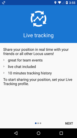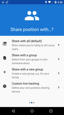 Your real-time location is shared with public at Live Tracking website and also with all other Locus Map users who have this type of service active.