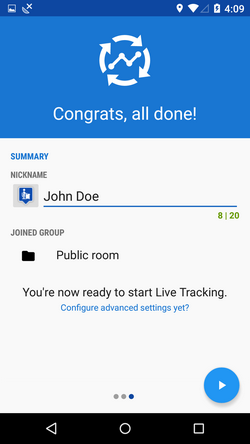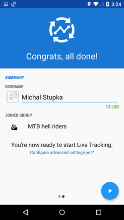 To start a new group, select this option. Your new group is added right away to the configuration and you can start live tracking: