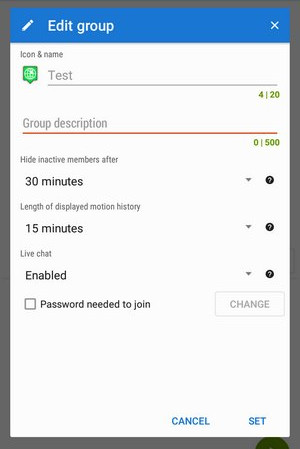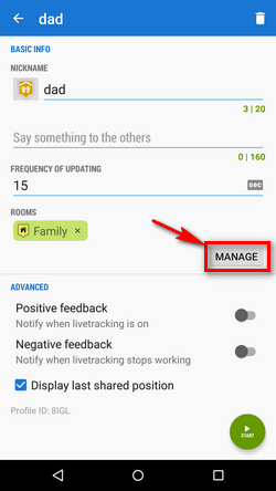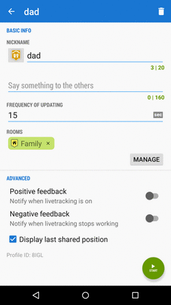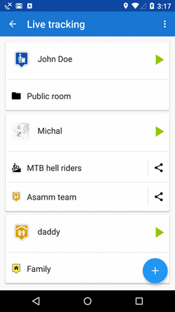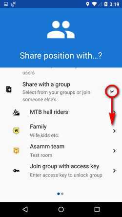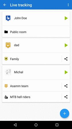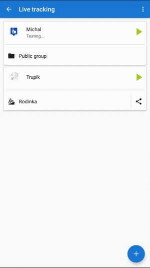 Groups for sharing your real-time location with particular people can be created, edited, and deleted in a live tracking group manager. You can access it from an open configuration of any live tracking profile: