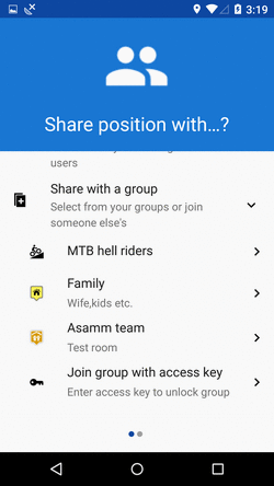 Select a pre-defined group of people and share your real-time location with them. Nobody else will see your shared location. These groups were created by you or someone else.