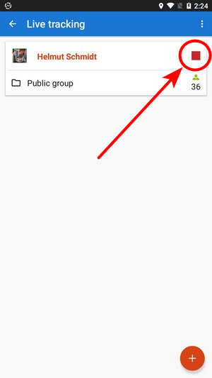 To STOP live tracking in the selected profile, tap the red square button as was mentioned above.