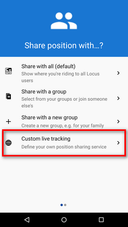 Do you want to start live tracking via a live tracking service independent of Locus? Select last option in Live tracking start menu: