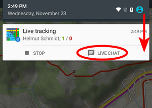 Users joined in a group live tracking can communicate in real time via live chat. It can be accessed from the main map screen: