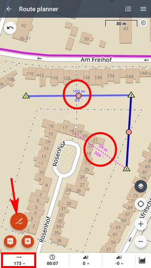 Another method of easy measuring of the distance between your actual GPS position and any point on the map.