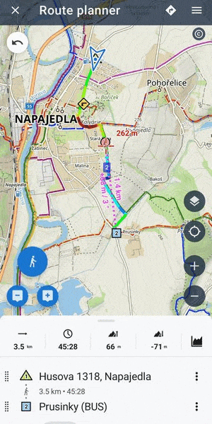 By default, Locus Map generates the route with the latest used routing profile. To change that, tap the route profile selection button and select another profile (activity or means of transport):