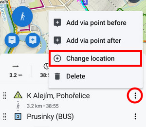 The starting point of your route can be re-defined too, just move it on the map or select another location method from the point menu: