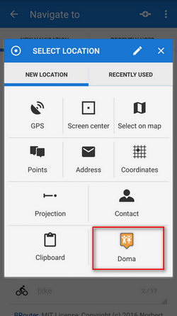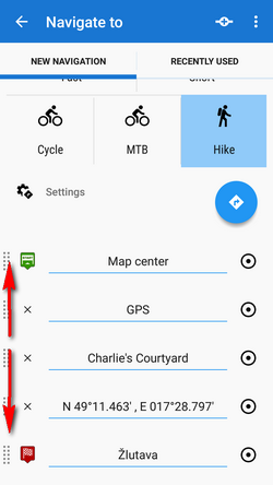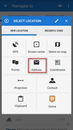 Next step is to choose sports activity or means of transport an route (aka navigation profile). The selection depends on used routing services.