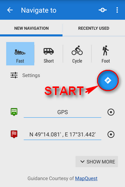 Go to the 'Recently used' tab. Tap one of the routes, select between navigation and guidance and tap to start.