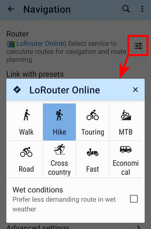 Here you can set up the default service for calculating routes for Navigate to feature and the Route planner. Locus has its own service LoRouter but it can also cooperate with external routers. Each service has specific properties, some are functional online only, and some work offline (after downloading offline navigation data).