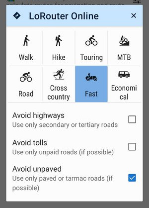 Besides the LoRouter or BRouter profiles embedded directly in Locus, it is also possible to use profiles provided by the BRouter developer or by other users as the .BRF files: