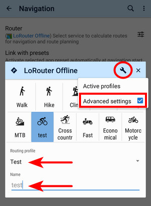 By default, LoRouter Offline offers 8 basic profiles. Each profile has additional setting option: