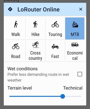 Furthermore, the MTB profile offers a selection of the terrain level in 5 degrees from smooth to rugged for fine-tuning of the route surface: