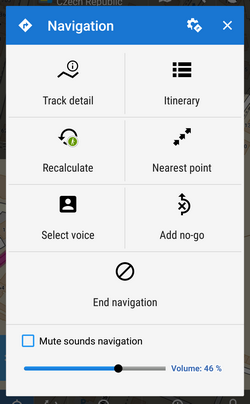 Follows user-defined or imported routes. Locus Map renders voice navigation commands automatically from the shape of the route. More info >>