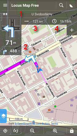 Standard turn-by-turn navigation with voice orders from point A to point B with route calculated by an external routing service (called also navigation data source). Locus Map supports several online routing services and you can of course navigate also offline. The routing service calculates the route according to selected navigation profile (activity or means of transport) - car, bicycle, foot etc. In case of online routing services it is necessary to maintain the internet connection. More info >>
