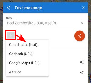 This directly calls available messaging apps to send Google Maps or Geohash URLs without further editing.