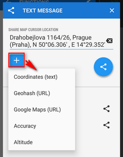Directly calls available messaging apps to send Google Maps or Geohash URLs through them without further editing.