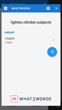 Sharing the map cursor position decoded in what3words system. Several languages are supported.