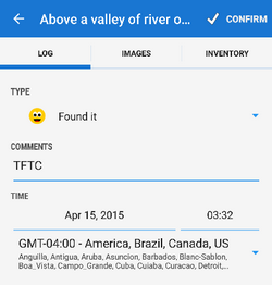 • select type of log (Found it, Didn't find it…), insert comment, attach images etc.