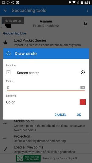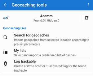 The first use of these tools triggers logging in to the Geocaching.com website and permission to share its data with Locus Map.