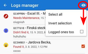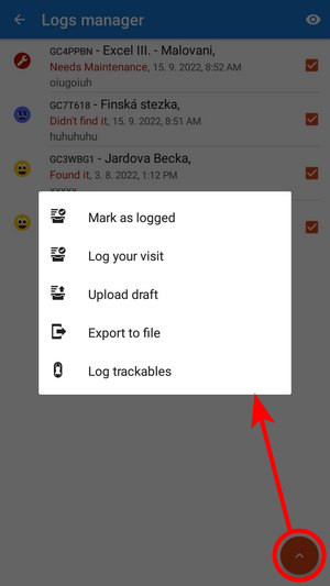 This is the place where the drafts (field notes) can be simply managed, e.g. exported in a file or logged into the Geocaching.com website.